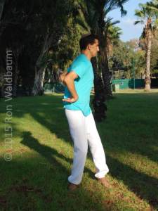 התרגיל הבא מדמה עמידה במים בגובה האגן ומאפשר יציאה ממרכז הכובד, יצאה מקיבעון מחשבתי, זרימה פיזית ונפשית במרחב האישי של המתרגל.